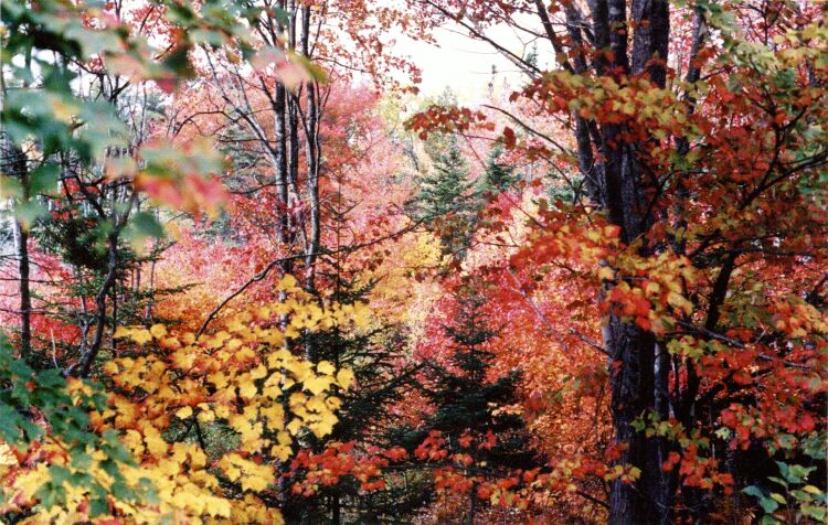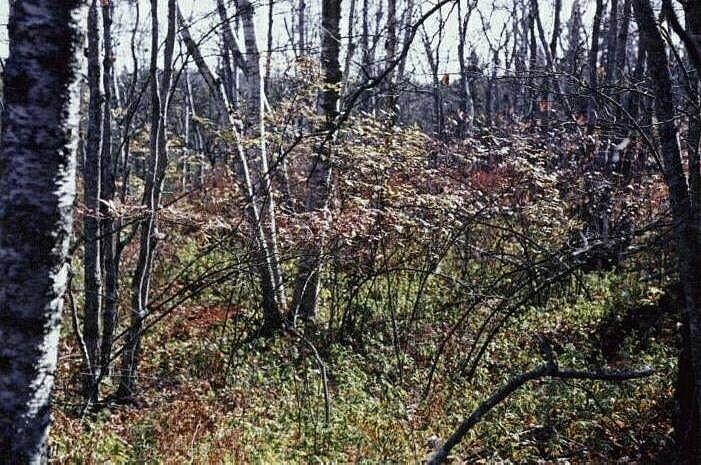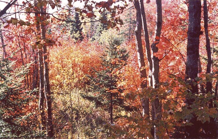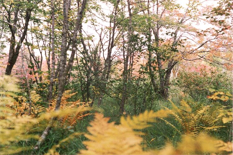 Mountain maples in the spring Mountain maples in the autumn Autumn view of the woods Autumn foliage A small bog in the autumn |
