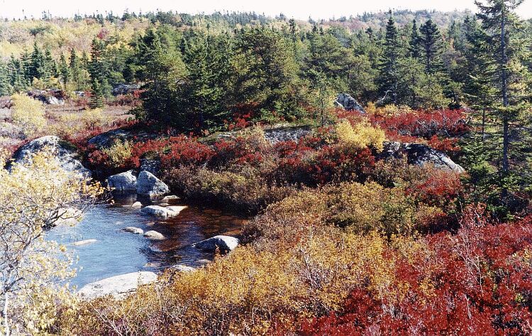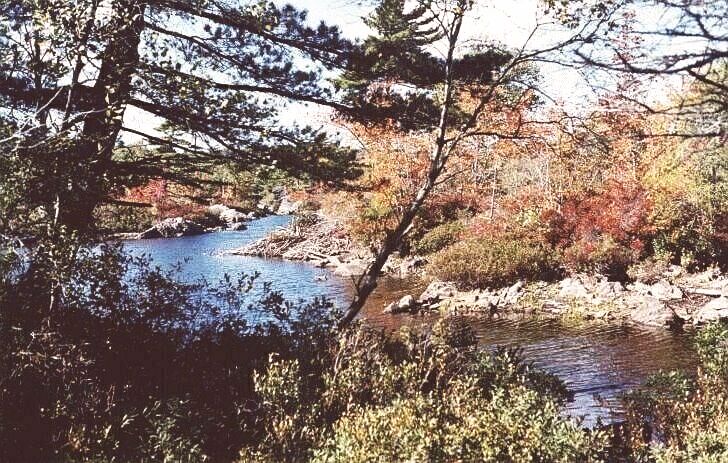 The McIntosh Run flowing into West Pine Island Pond in early spring Trees and ferns by the McIntosh Run in autumn |